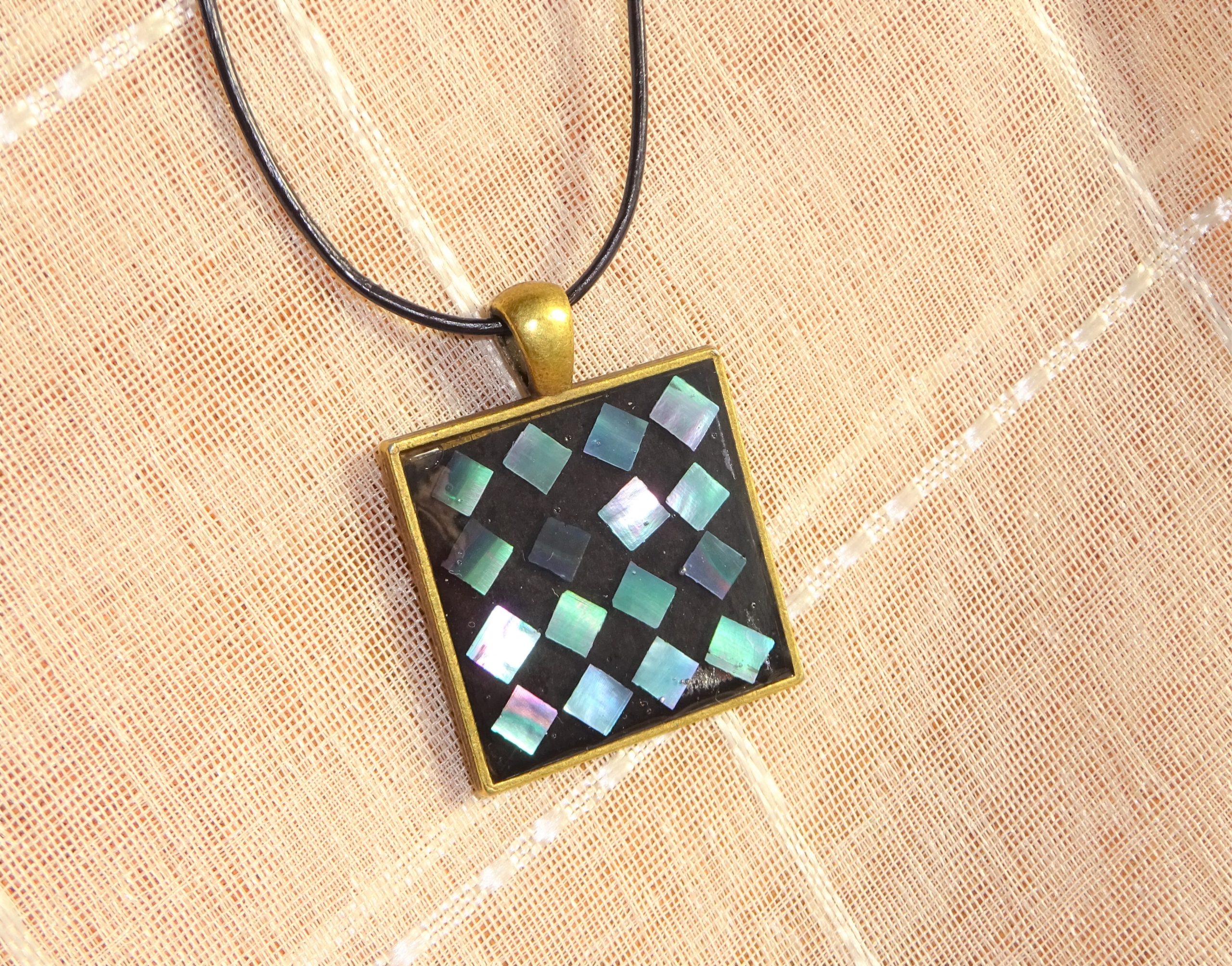 螺鈿とレジンを組み合わせたスクエアペンダント。