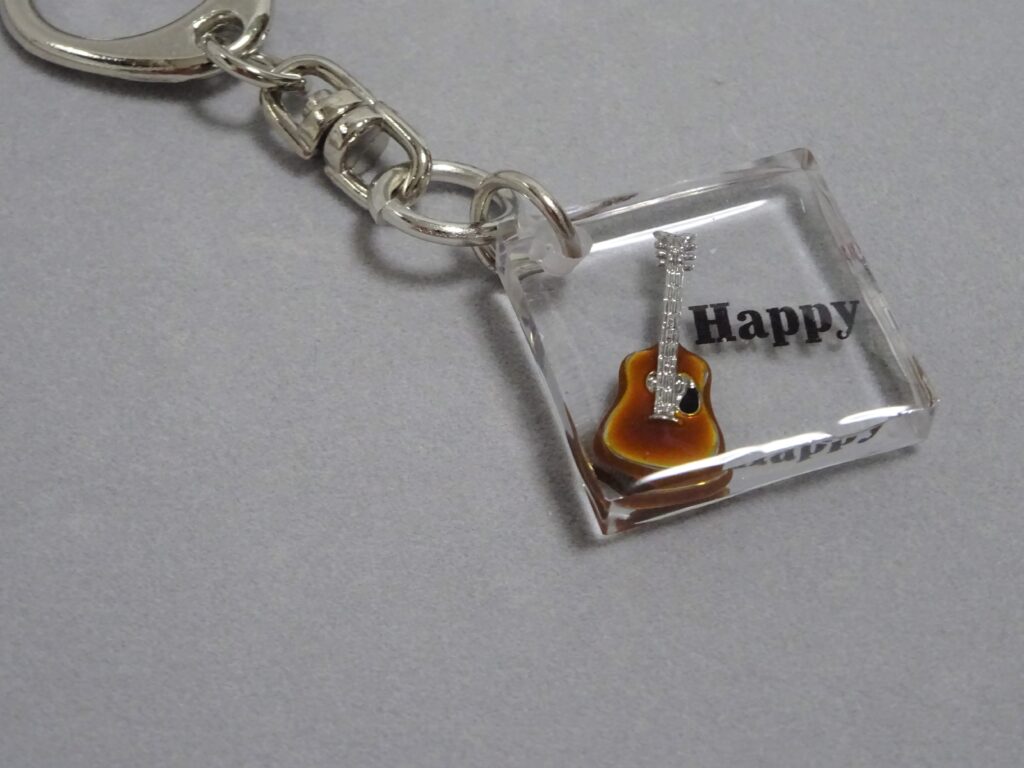 今回は、ギターのキーホルダーの作品を